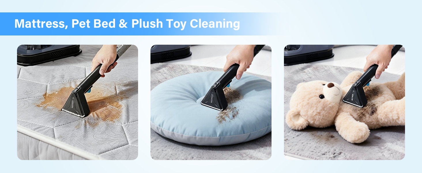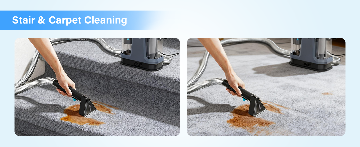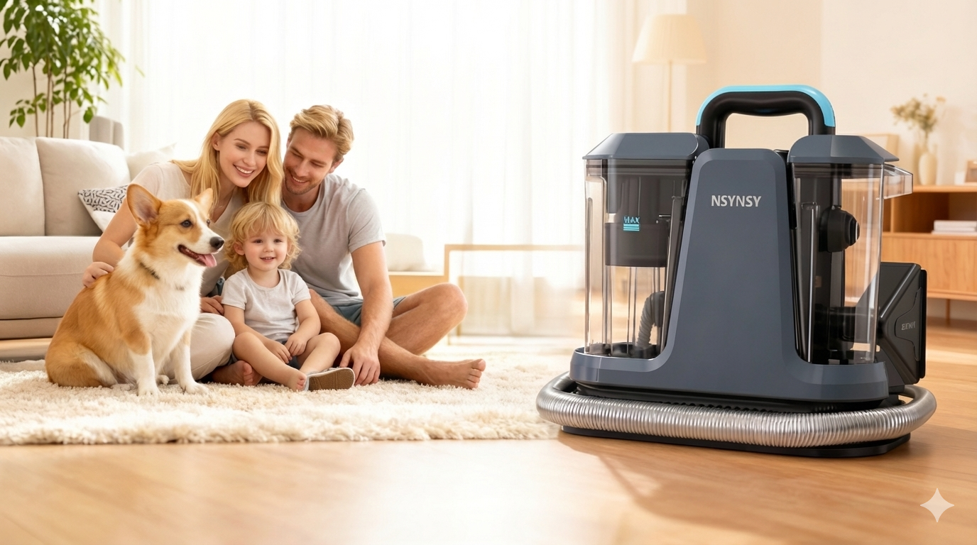 Our featured product — the NSYNSY Portable Carpet & Upholstery Spot Cleaner — perfectly reflects this mission. Compact yet impressively strong, it delivers deep extraction performance far beyond its size. From sofas and mattresses to stairs, rugs, and car interiors, it reaches where dirt hides and restores your fabrics with ease.